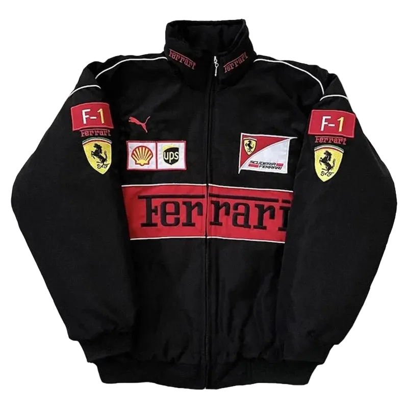 Every emblem is expertly stitched, ensuring a premium look and long-lasting quality that sets this jacket apart from standard designs. With ribbed cuffs, collar, and hem for a secure fit, this jacket blends Ferrari heritage with a clean, street-ready edge.